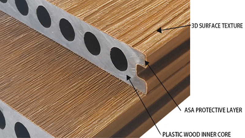 Durabilidade aprimorada: A camada de polímero atua como uma barreira protetora, tornando o deck mais durável, mais duradouro e resistente a arranhões, manchas e desbotamento.
